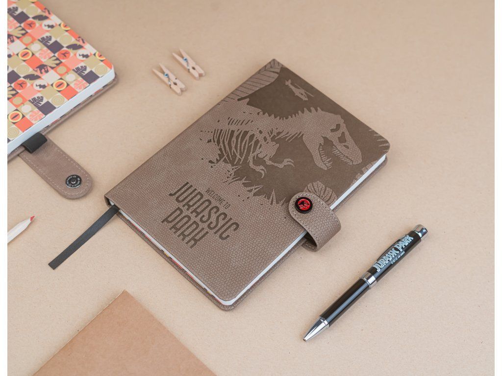 Zápisník premium A5 s propiskou, hnědý, Jurský Park