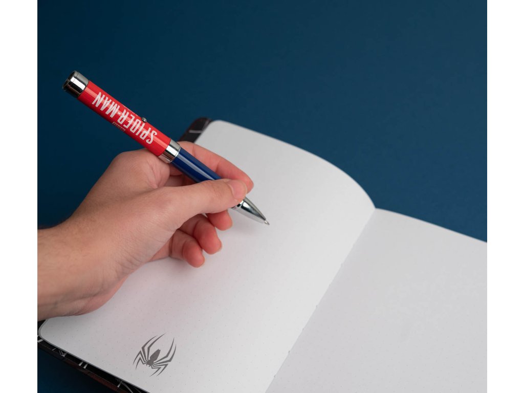 Poznámkový blok A5 s pevnou vazbou a projektorovým perem. Vyznačuje se matnou laminovanou deskou s reliéfním povrchem, personalizovaným vnitřkem, zaoblenými rohy, lepenou vazbou, záložkou se stuhou, kapsou a zapínáním na gumičku. Obsahuje 92 listů (184 stran) o gramáži 100 g/m². Součástí je také pero, které promítá obraz stisknutím tlačítka na těle pera a je napájeno 4 bateriemi AG3 1,5 V (součástí balení).Doplňkové parametry