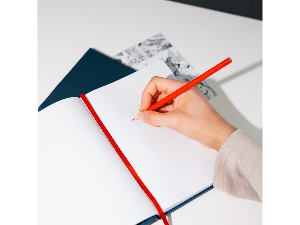 Poznámkový blok A5 s pevnou vazbou. Vyznačuje se PU deskou, personalizovaným vnitřním lemováním, rovnými rohy, lepenou vazbou, záložkou se stuhou a kapsou. Obsahuje 96 listů (192 stran) o gramáži 100 g/m².Doplňkové parametry