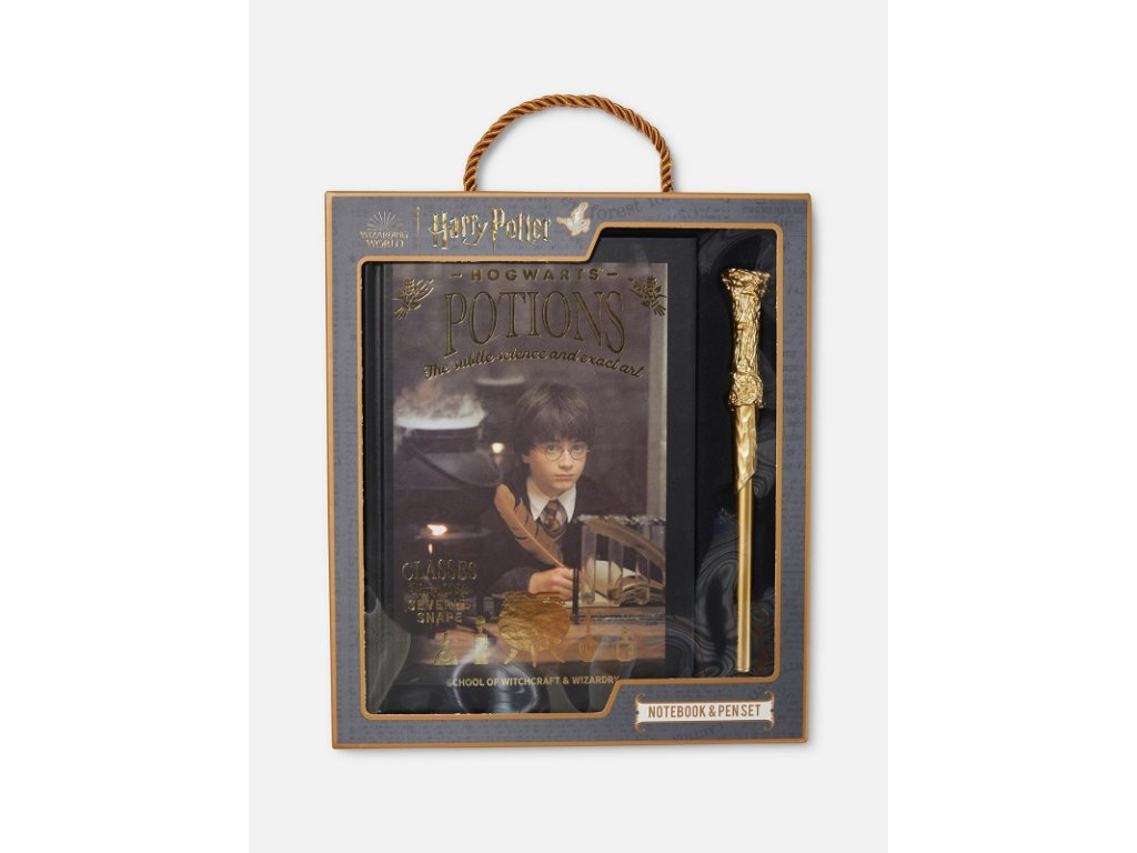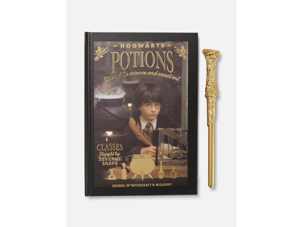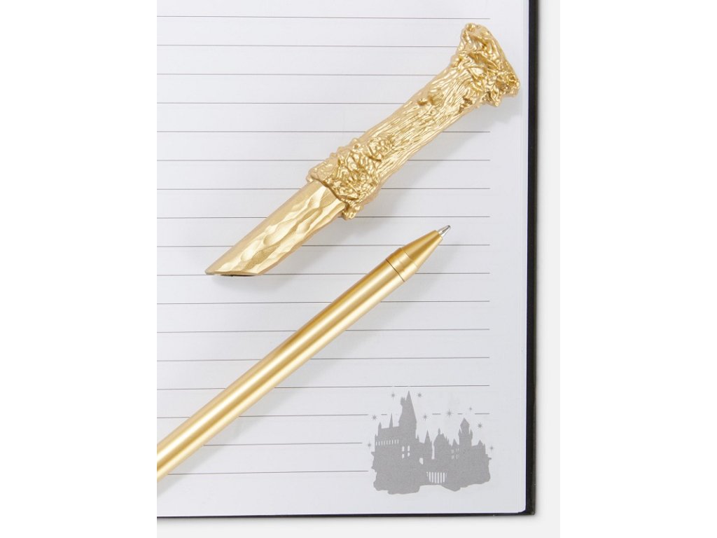 Dodejte své sbírce kouzlo s tímto deníkem s motivem Harryho Pottera a zlaté propisky ve tvaru kouzelnické hůlky.