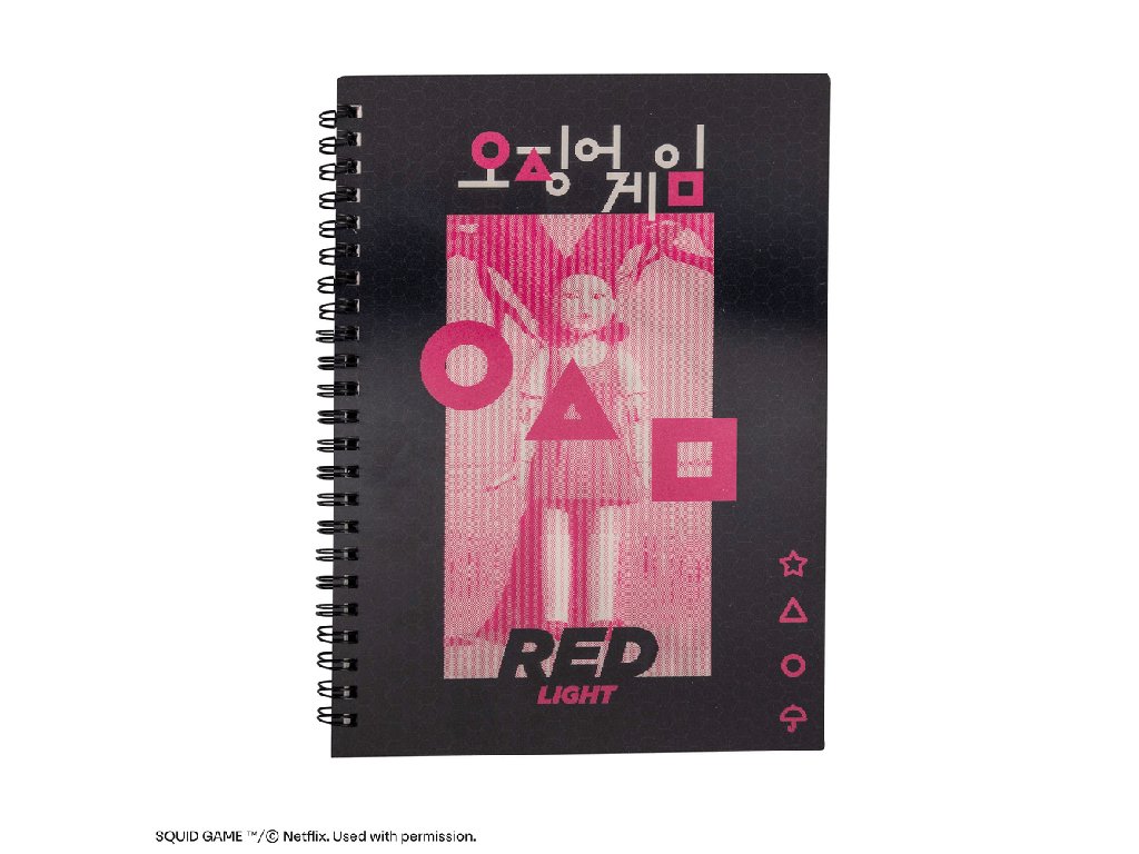 Vnořte se do napínavého světa Squid Game s naším zápisníkem Červená a zelená s lentikulární obálkou, který věrně odráží napětí této ikonické hry. Obálka zobrazuje lentikulární obrázky Young-Hee, které plynule přecházejí mezi růžovou a zelenou.