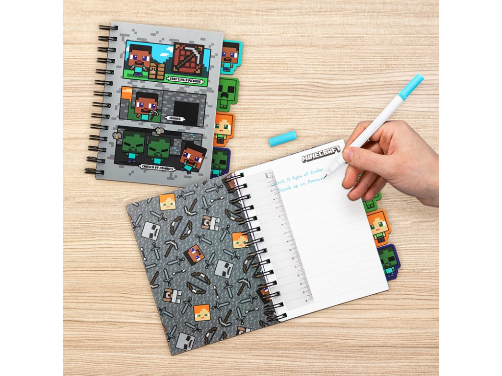 Zápisník Minecraft se čtyřmi oddělovači ve velikosti A5, ideální po malé i velké fanoušky této populární hry, kteří chtějí své nápady zaznamenat stylově.Doplňkové parametry