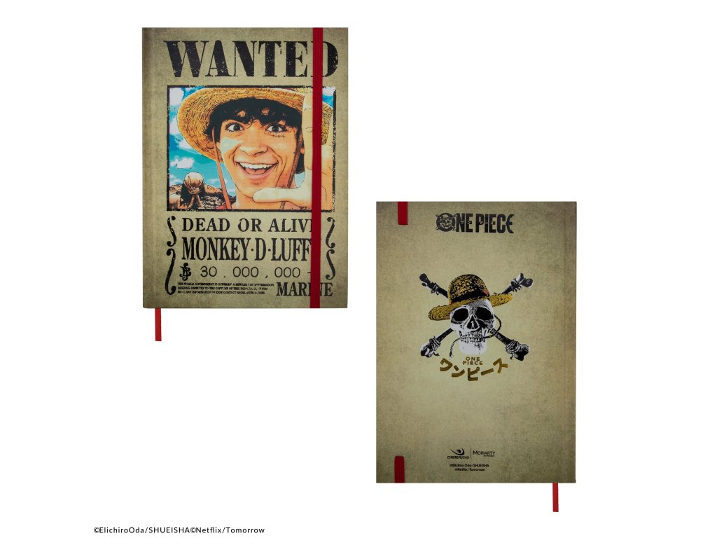 Objevte v tomto zápisníku plakáty Gold Rogera, Dracule Mihawka, Arlonga a Buggyho. Na zadní stranu si navíc můžete vložit vlastní fotografii a jméno a stát se tak součástí zábavy, jako byste byli na vlastním plakátu! Vestavěná kapsa, maskovaná jako „Wanted Poster“, vám poskytne praktické místo pro uložení volných papírů.