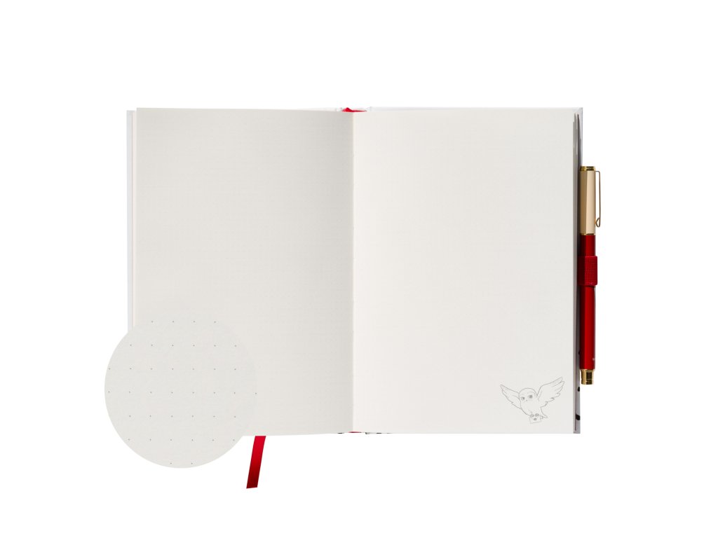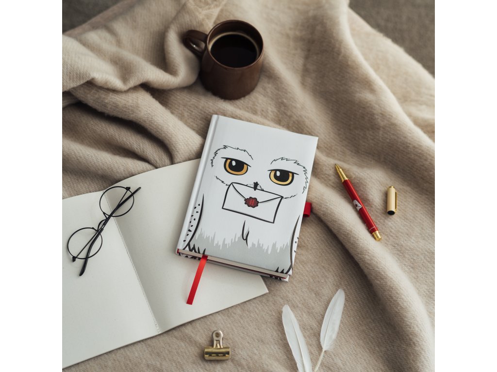 Zápisník s perem, které je součástí balení. Jedinečný deník inspirovaný sovou Hedvikou z Harryho Pottera, který vám nejen pomůže uspořádat vaše každodenní úkoly, ale také dodá vašim poznámkám kouzlo. Stránky jsou tečkované.