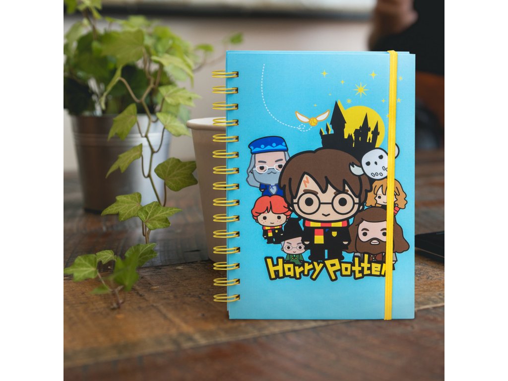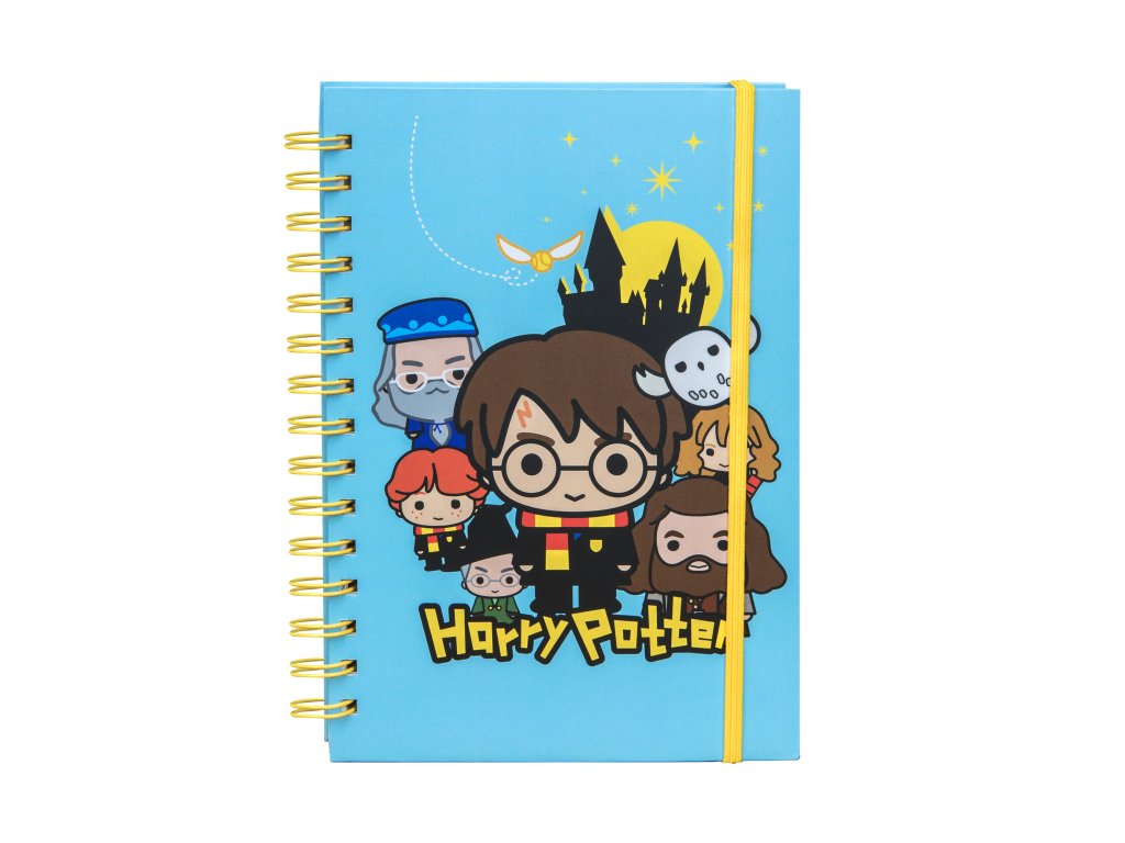Zápisník spirálový modrý s postavičkami, Harry Potter