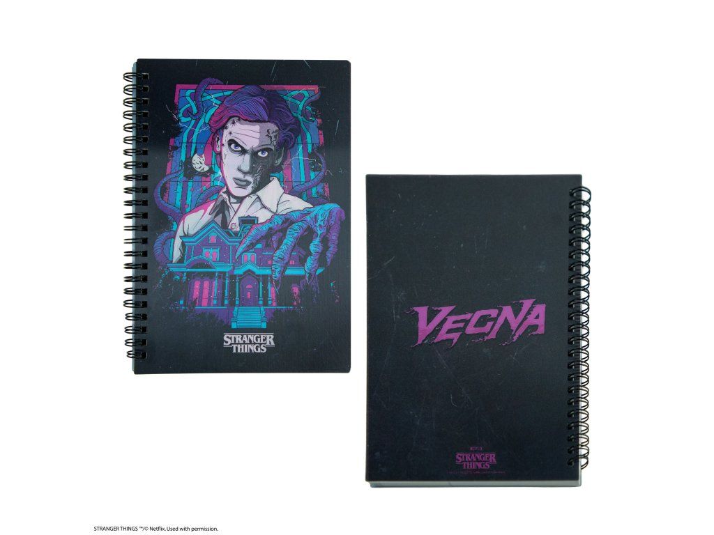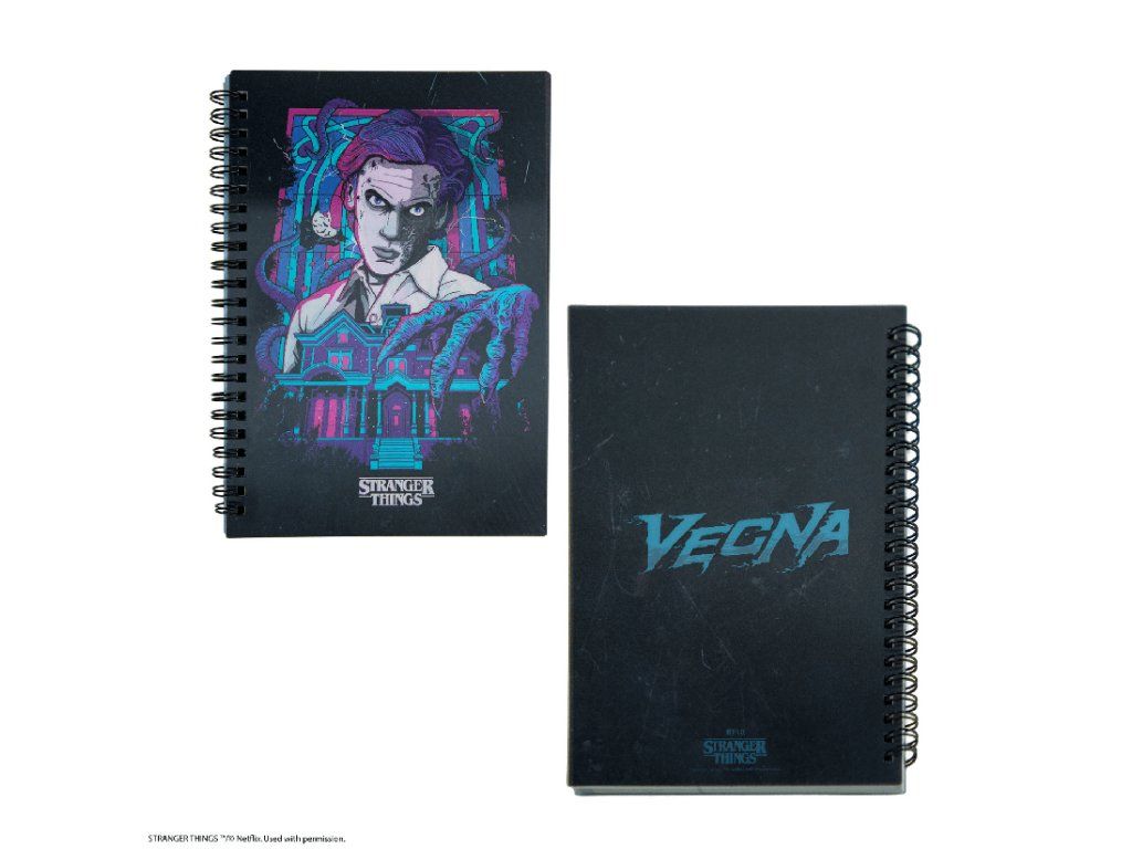Čtvrtá série seriálu Stranger Things představila největšího padoucha tohoto seriálu: Vecna. Tento zápisník zvýrazní postavu pomocí měnícího obalu, který zobrazuje střídání Vecny a Henryho Creela, známého také jako One. Zažijte napětí s děsivou Vecnou a dopřejte si tento zápisník v měkké vazbě s linkovanými stránkami a hladkým papírem. Ať už si děláte poznámky o setkáních s bytostmi z Upside Down, nebo dokumentujete zážitky z reálného světa, tento zápisník jistě zaujme každého fanouška Stranger Things.