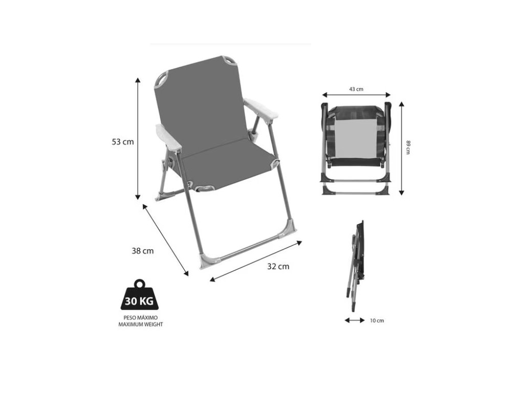 Materiál: kovový rám s polyesterovým sedákem, plastové područky