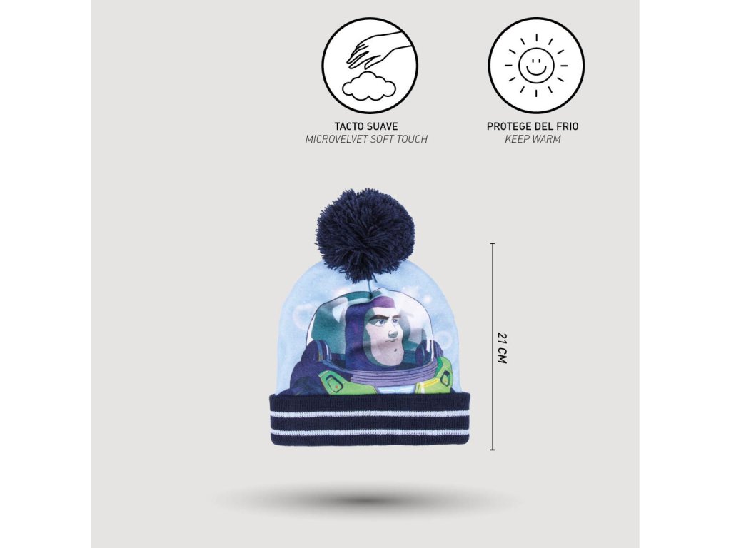 Dětský zimní set Toy Story s motivem Buzze Rakeťáka obsahuje pletenou čepici s bambulí a rukavice. Teplý a stylový doplněk pro fanoušky oblíbeného animovaného filmu Příběh hraček.