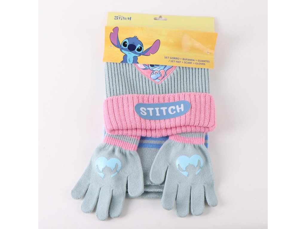 Zimní sada Stitch obsahuje čepici, nákrčník a rukavice s motivem oblíbeného mimozemšťana ze světa Disney. Set je vyroben z měkkého a hřejivého materiálu, který poskytuje pohodlí a ochranu před chladem.Doplňkové parametry