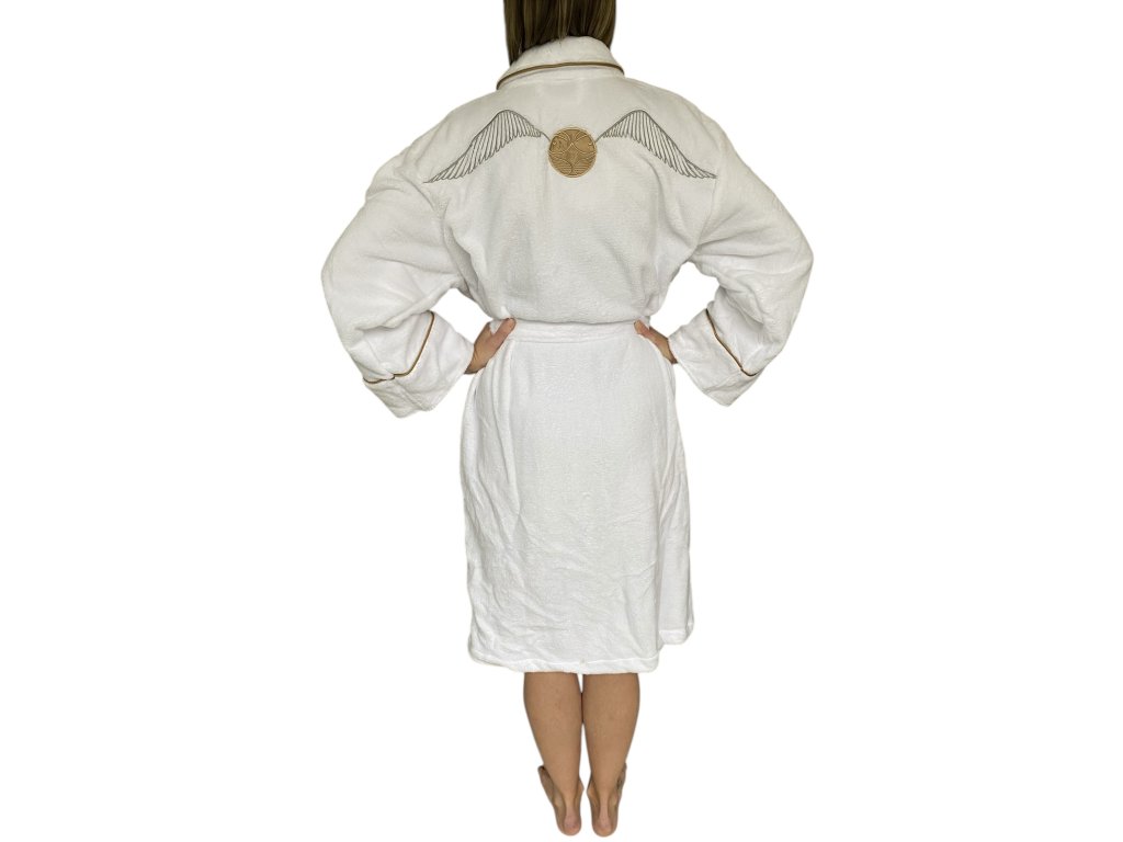 Heboučký bílý dámský župan s motivem oblíbené famfrpálové Zlatonky.