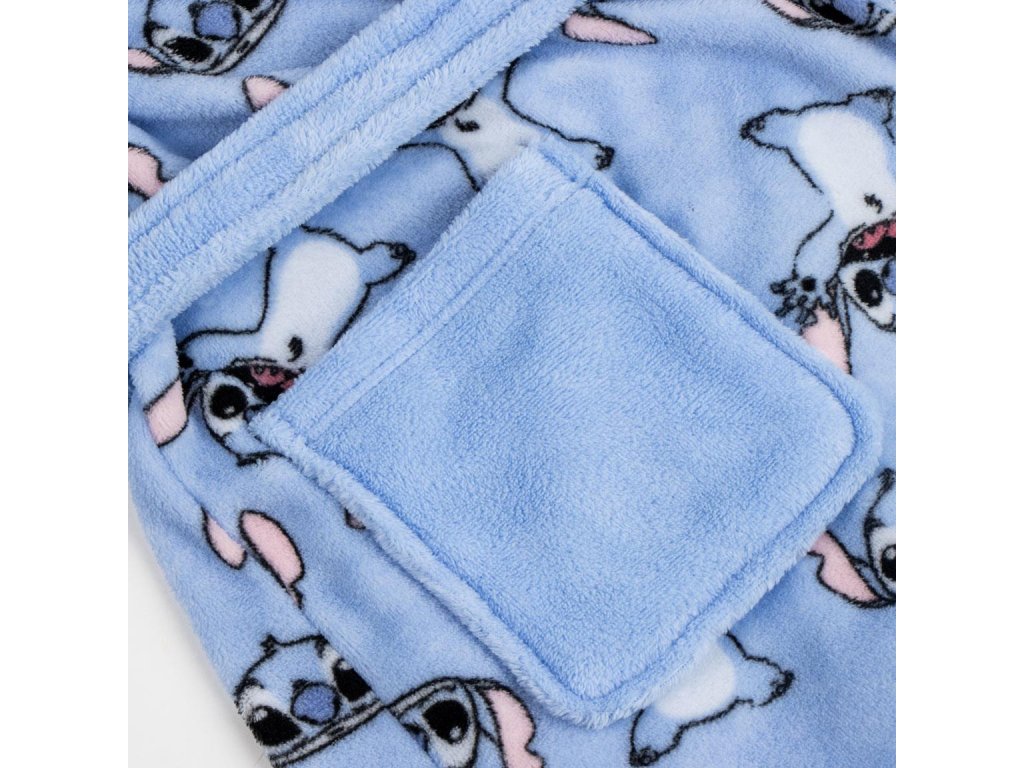 Modrý župan s kapucí s motivem Stitche je vyroben z měkkého a hřejivého materiálu, který poskytuje pohodlí po koupeli i při domácím odpočinku. Design s oblíbenou postavičkou dodává županu veselý a hravý vzhled, ideální pro děti i fanoušky Stitche.Doplňkové parametry