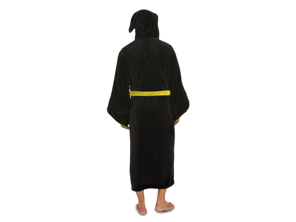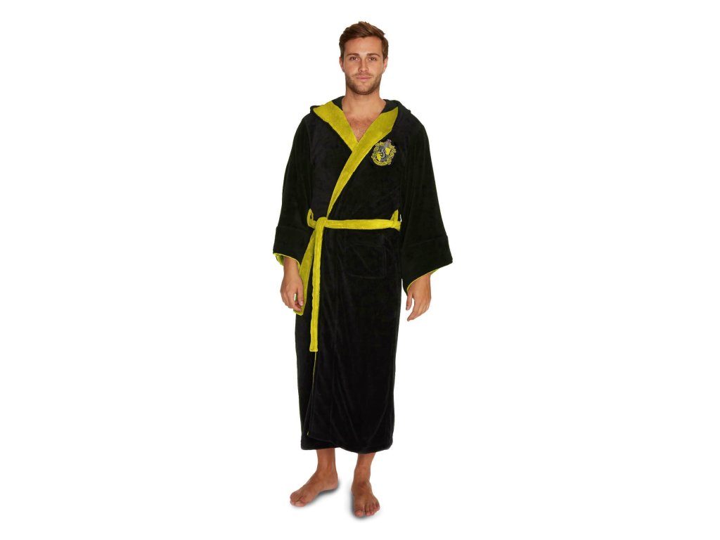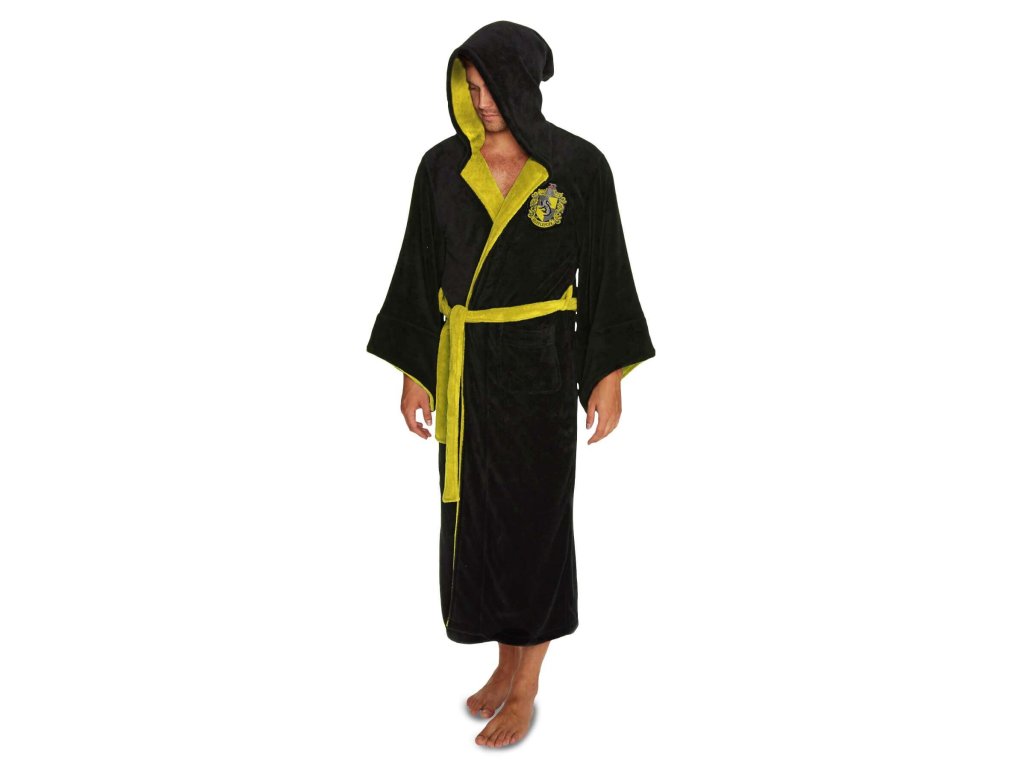 Župan pro dospělé z Harryho Pottera, který má super měkkou vlněnou povrchovou úpravu a na levém prsu mají vyšitý znak koleje Mrzimor. Dodává se v černé barvě s žlutým lemem a má kapuci ve stylu čarodějnického klobouku.