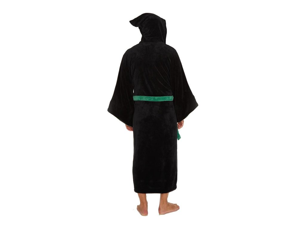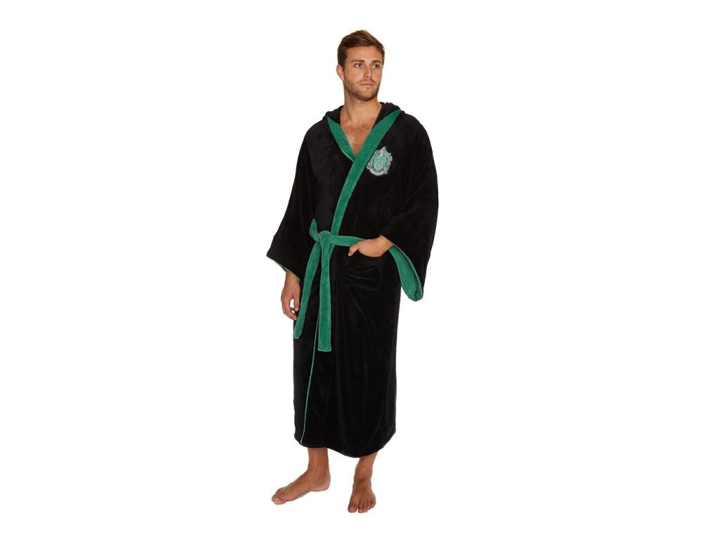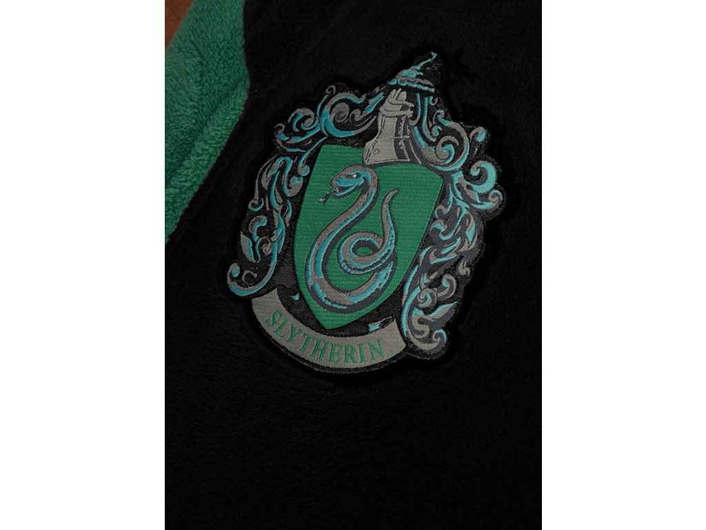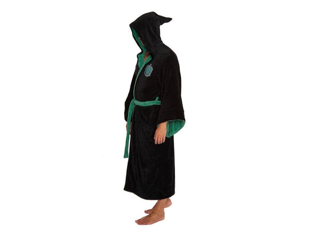 Župan pro dospělé z Harryho Pottera, který má super měkkou vlněnou povrchovou úpravu a na levém prsu mají vyšitý znak koleje Zmijozel. Dodává se v černé barvě se zeleným lemem a má kapuci ve stylu čarodějnického klobouku.